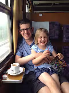 My happy place is the compartment of a European train, with a cup of coffee in one hand and a history book in the other.
